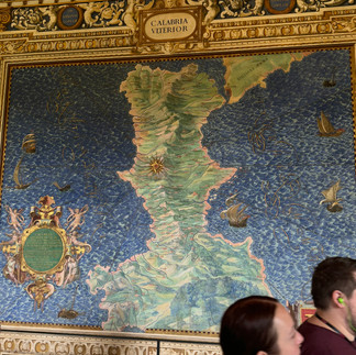 We gathered in a courtyard known as "Cortile de Pigna" (Pine Courtyard) which was significant to me because I had heard many different perspectives on the meaning behind the pinecone. As I was asking Fabiola about it, I also asked about the Vatican archives. She told me that the courtyard we were standing in was directly above a portion of the 53 mile underground labyrinth of original texts and records held privately by the Vatican. Knowing a little bit about the Vatican archives makes it so much more significant when you realize they are literally right under your feet in that moment. We were led across the courtyard and through a long hallway lined with paintings, frescos, sculptures, and huge knit tapestries depicting a variety of aspects of Catholic, Roman, and Italian history. It was quite warm, and difficult to fully appreciate as we were moving, listening, and dodging other tourists. The long hallway ended and we were herded into a holding area where we were then briefed on the rules of entering the Sistine Chapel. Nobody was to speak, or make noise or take pictures... When it was our turn to squeeze into the chapel we were greeted by the din of conversation, and repeated scolding from guards. It was quiet chaos. Of course people were taking pictures and talking. It was again hard to allow my mind to fully embrace the serenity and weight of the magnificent, and legendary ceiling which was painted by Michelangelo. He was only 33 when he began the work, and it took him 4 years to complete. I've allowed home improvement projects to sit idle for the same amount of time... It was a somewhat deflating realization.